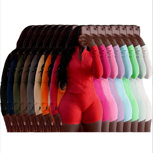 डेनिम शॉर्ट्स ने स्टॉक में Mz88616 को सेट किया, जो यूरोप और अमेरिका में लोकप्रिय है, क्रॉस-बॉर्डर हॉट-सेलिंग लॉन्ग स्लीव लोचदार शॉर्ट्स बेल्ट सेट