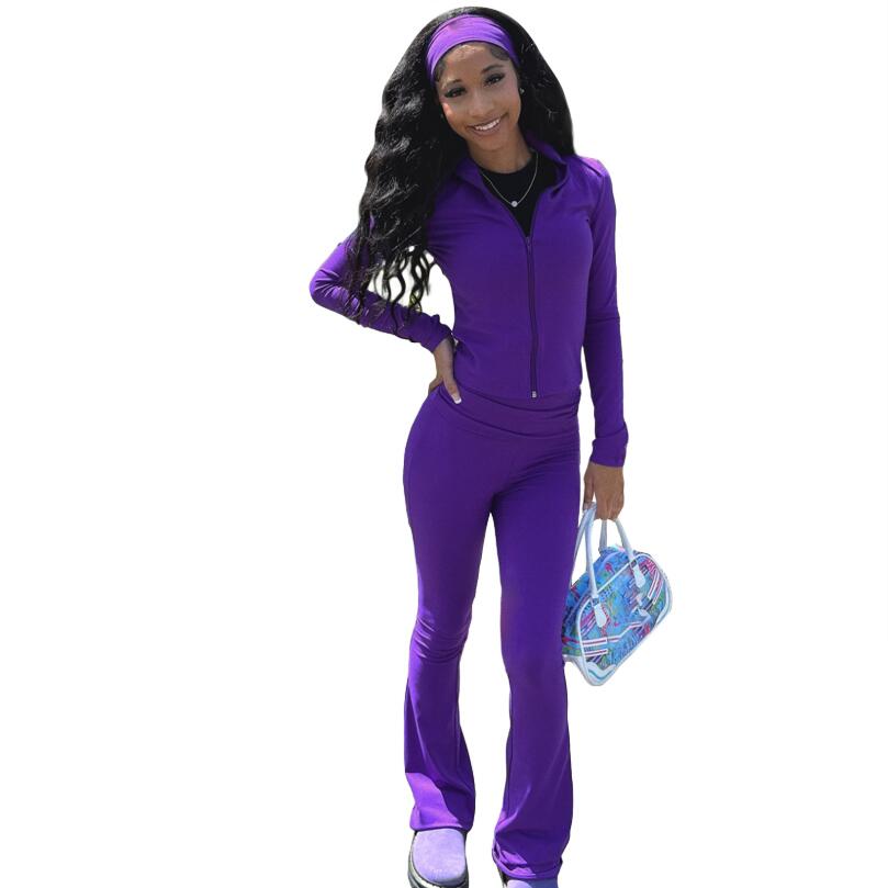 K3766 2025 सर्दियों/गिरावट महिलाओं के 2 टुकड़े सेट हुडी जिपर जैकेट w/उड़े हुए पैर की पैंट आकस्मिक स्ट्रीटवियर पोशाक दो-टुकड़ा सेट
