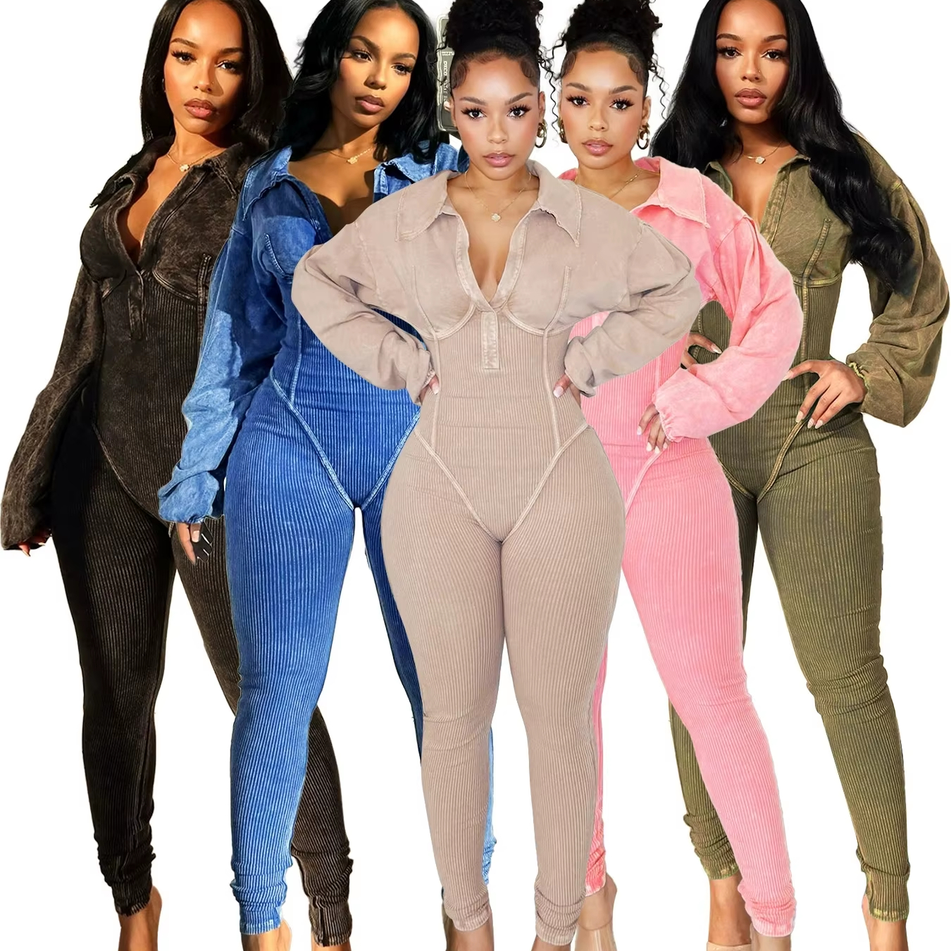 K25q76877 2025 शरद ऋतु महिलाओं के टाइट्स लंबे आस्तीन रंग ब्लॉक कॉलर बटन फ्रंट स्लिम फिट उच्च कमर