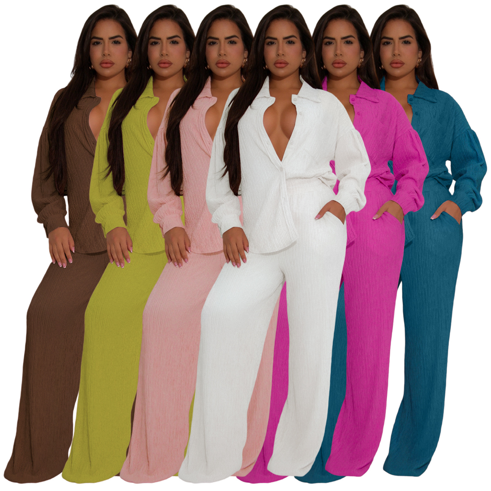 Hr25057 यूरोपीय अमेरिकी फैशन महिला 'स्टवे-पीस सेट फ्लेक्स-पीस सेट फ्लेक्स-लाइन वाली स्वेटशर्ट-फिट स्टड फ्लाारेड शरद ऋतु